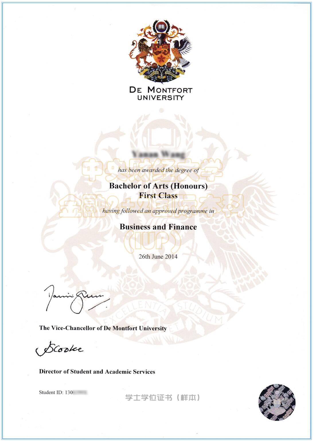 留學文憑樣本