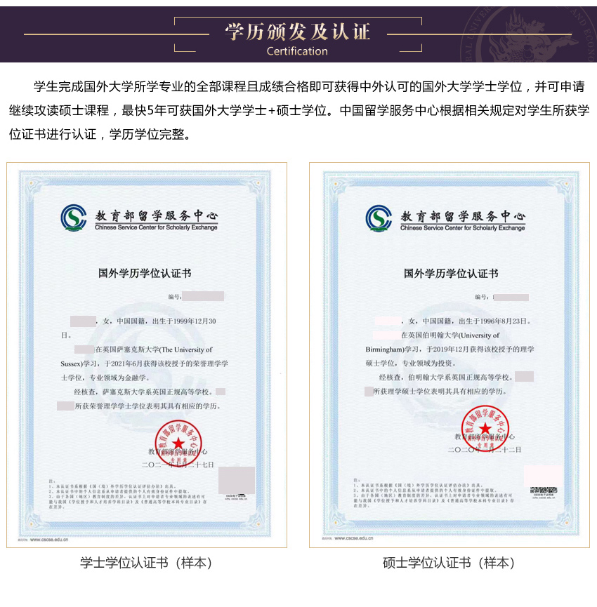 中央財經(jīng)大學始建于1949年,是教育部直屬、國家“雙一流”建設、“211工程”建設和首批“985優(yōu)勢學科創(chuàng)新平臺”項目建設高校。 中央財經(jīng)大學金融學科于2001年被教育部評定為國家級重點學科,2007年再次獲聘國家重點學科并支撐中央財經(jīng)大學應用經(jīng)濟學科成為國家重點一級學科,2017年應用經(jīng)濟學被確定為國家雙一流學科。 著經(jīng)濟全球化浪潮的快速推進,學校實施國際化戰(zhàn)略,大力開展多形式、錯層次的國際交流與合作,已與遍及世界五大洲的高校、政府機構(gòu)、國際組織、跨國企業(yè)等190余家單位建立了密切的合作關(guān)系。 2017年,中國(教育部)留學服務中心與中央財經(jīng)大學簽署協(xié)議建立戰(zhàn)略合作關(guān)系,開展金融學院國際本科項目。