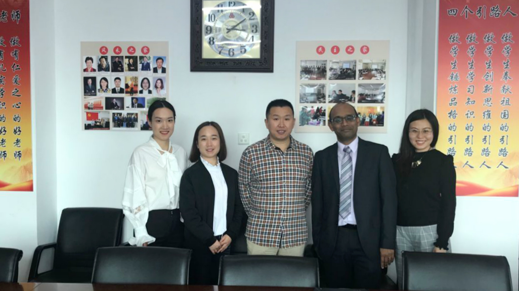 從右至左依次為:Joanna女士、Teerooven Soobaroyen教授、李俊峰副教授、黃丹老師、劉冰茹老師